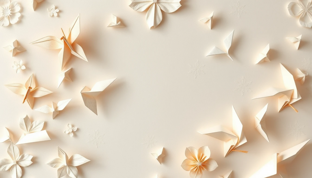 - Design Elements: Intricate patterns featuring cranes, blossoms, and geometric shapes to mimic the art of paper folding.