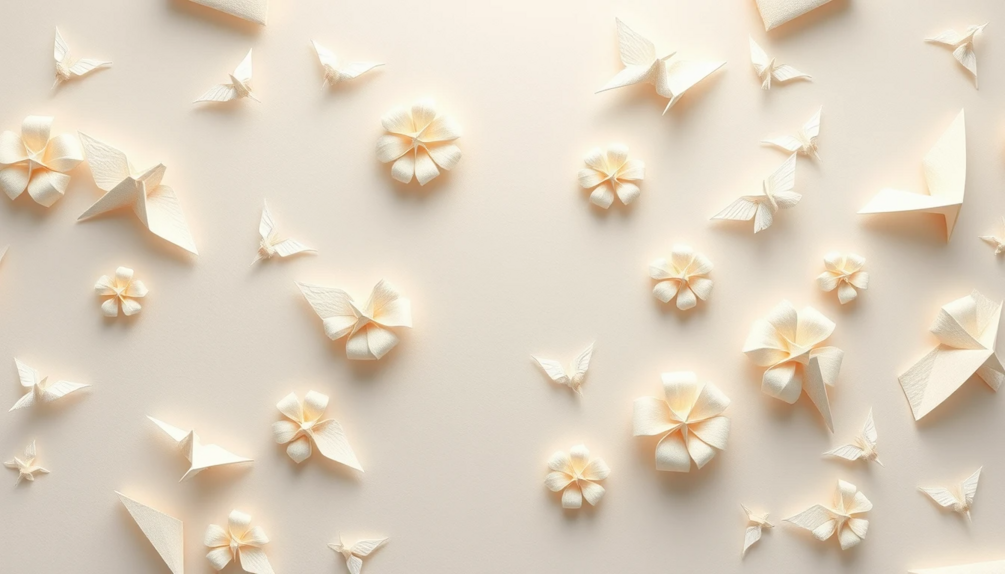 #OrigamiElegance, #TimelessCraft, #FoldedArt, #TranquilRetreat, #MinimalistBeauty, #WashiPaperTexture, #ArtisticDesign, #8KHDResolution, #WallpaperArt, #SereneSpaces
