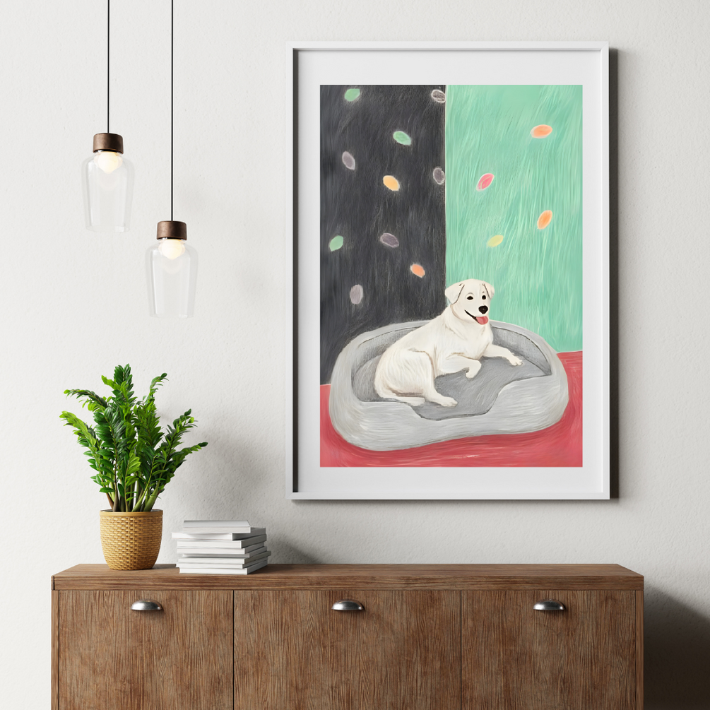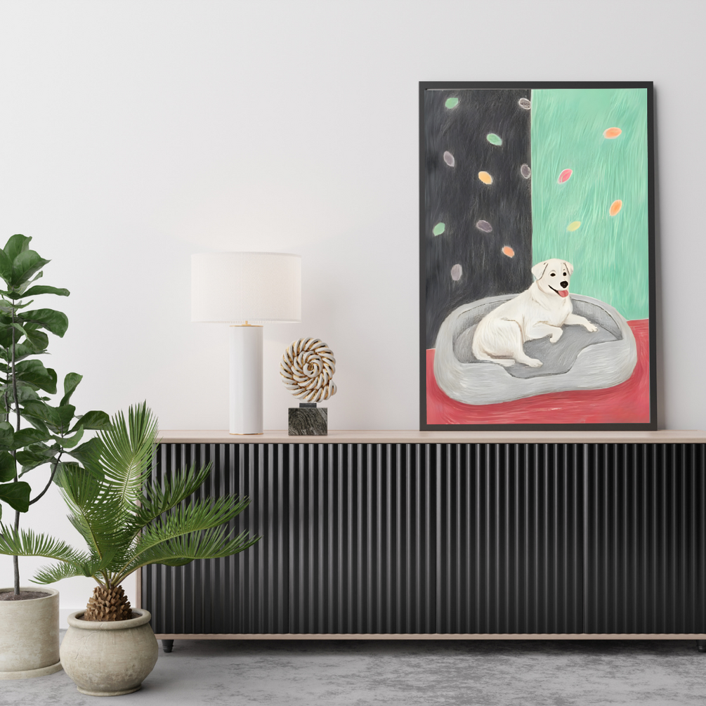 Honor your beloved companion with “Always With You”—a tender split-composition art print showing an empty dog bed on one side and its glowing, ghostly outline filled with floating memories on the other. This emotional tribute is delivered in high-resolution JPEG + PDF (300 DPI) across 5 ratios and 20+ sizes, including 4×6”, 8×10”, 16×24”, A4, A3, and more. A meaningful keepsake for your home, office, or as a compassionate gift.
